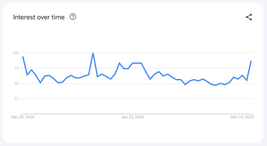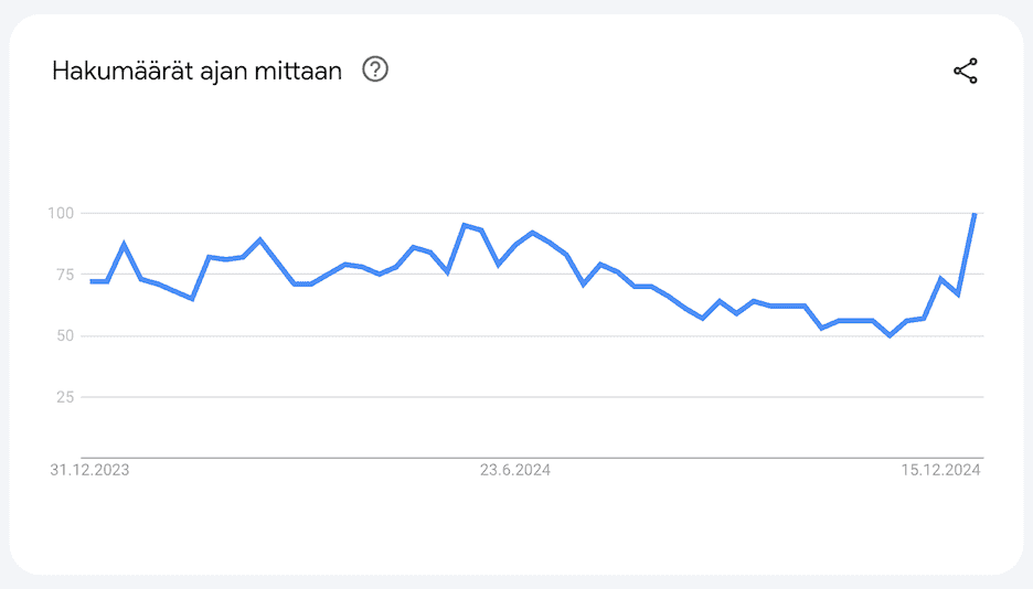 Voit tarkastella interaktiivista graafia Google Trendsissä.